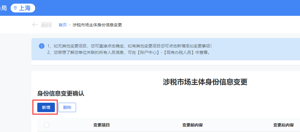 2. 进入【我要办税】—【综合信息报告】—【身份信息报告】-【涉税市场主体身份信息变更】