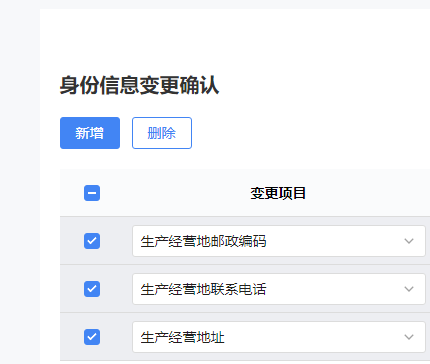 4.选择需要变更的项目,生产经营地址必选,邮编及联系电话注意核对,如有误本次一起变更后提交。